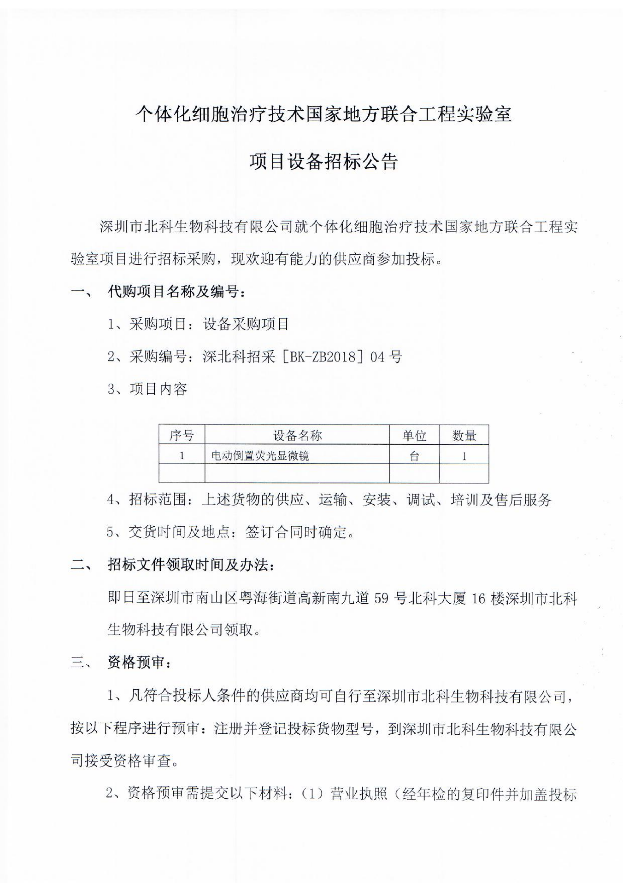 個體化細胞治療技術國家地方聯合工程實驗室項目設備招標公告