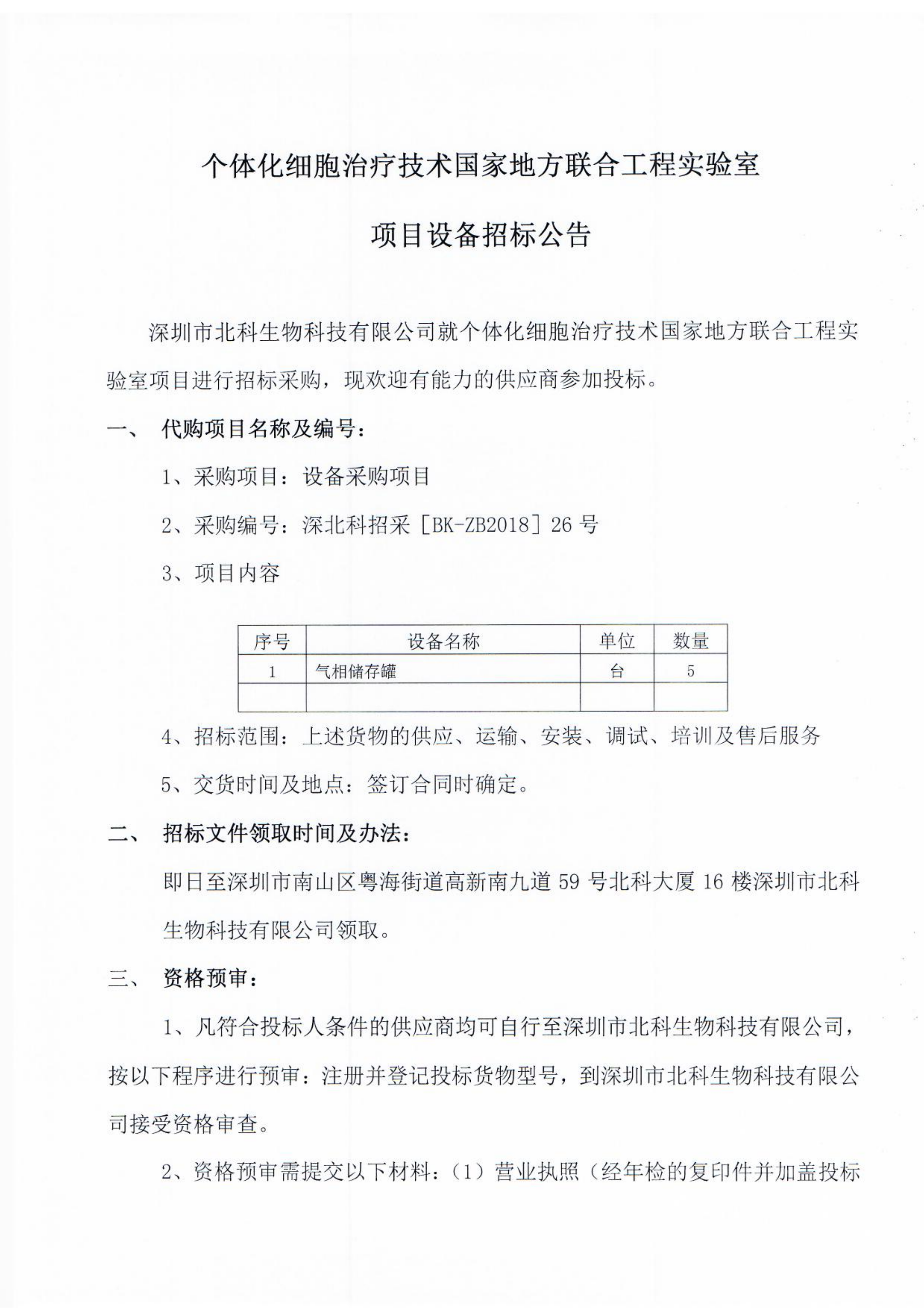 個體化細胞治療技術國家地方聯合工程實驗室項目設備招標公告