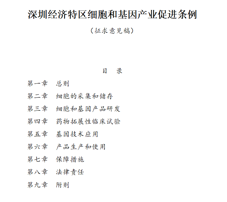 2021年11月12日,深圳新興領域重要立法《深圳經濟特區細胞和基因產業促進條例(征求意見稿)》在深圳市人大常委會網站上公開征求意見。